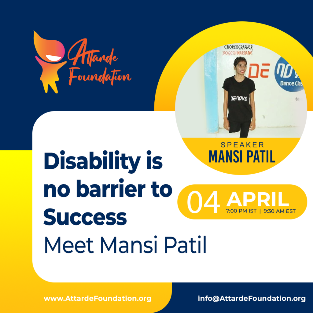 Attarde Foundation is very happy to host Mansi Patil, who will be taking us through her journey which will surely be an inspirational one!