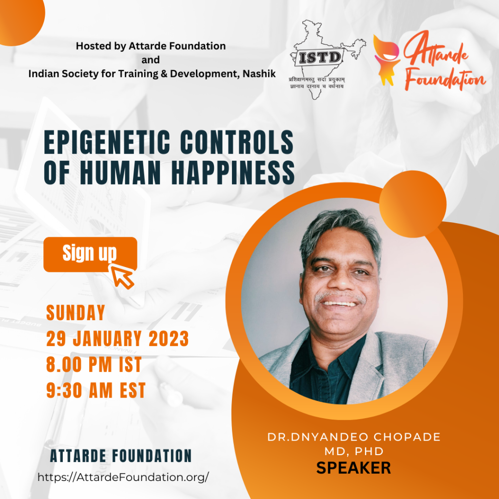 Attarde Foundation is pleased to share “Epigenetic Controls of Human Happiness” session video with all of you. Speaker is Honorary Guest Speaker Dr. Dyandeo Chopade